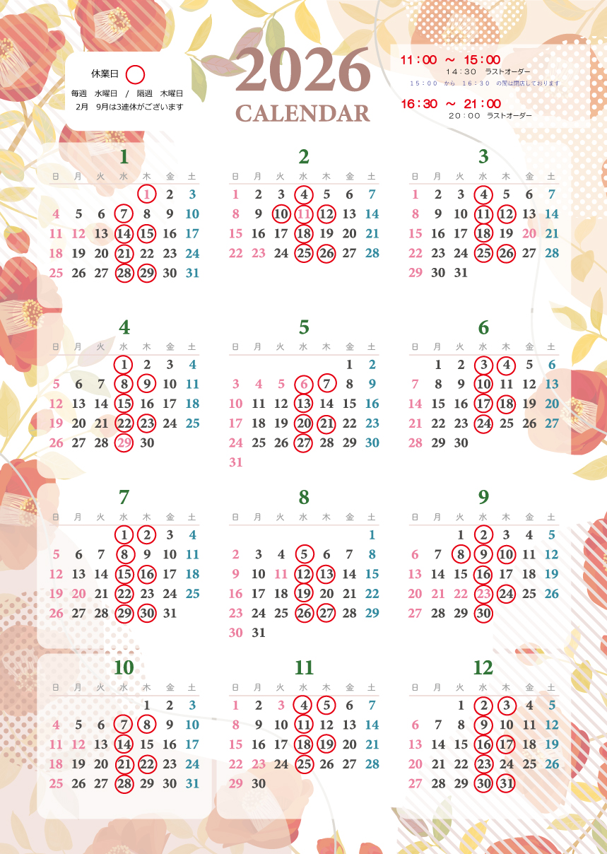 2026年 年間 休業日のお知らせ